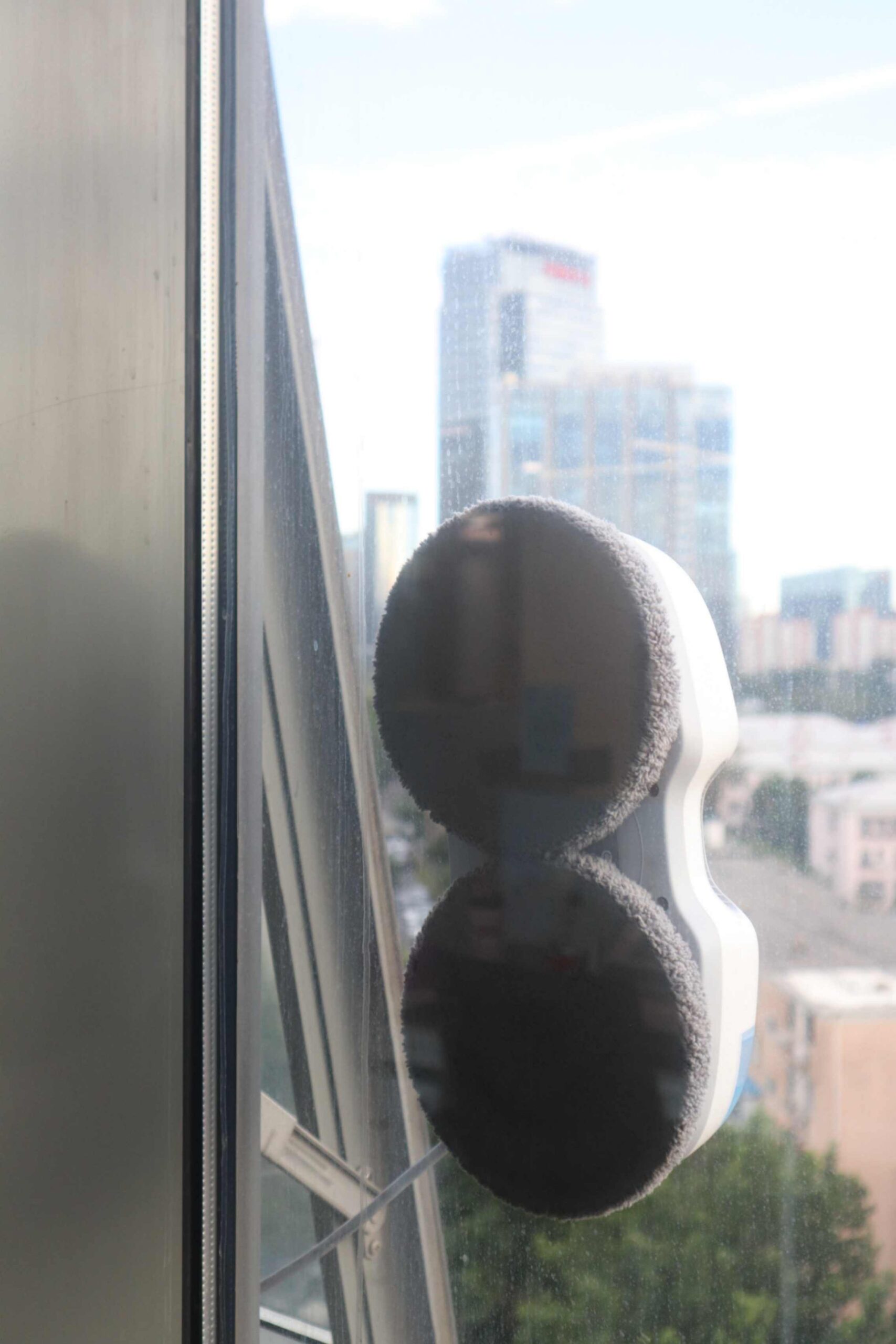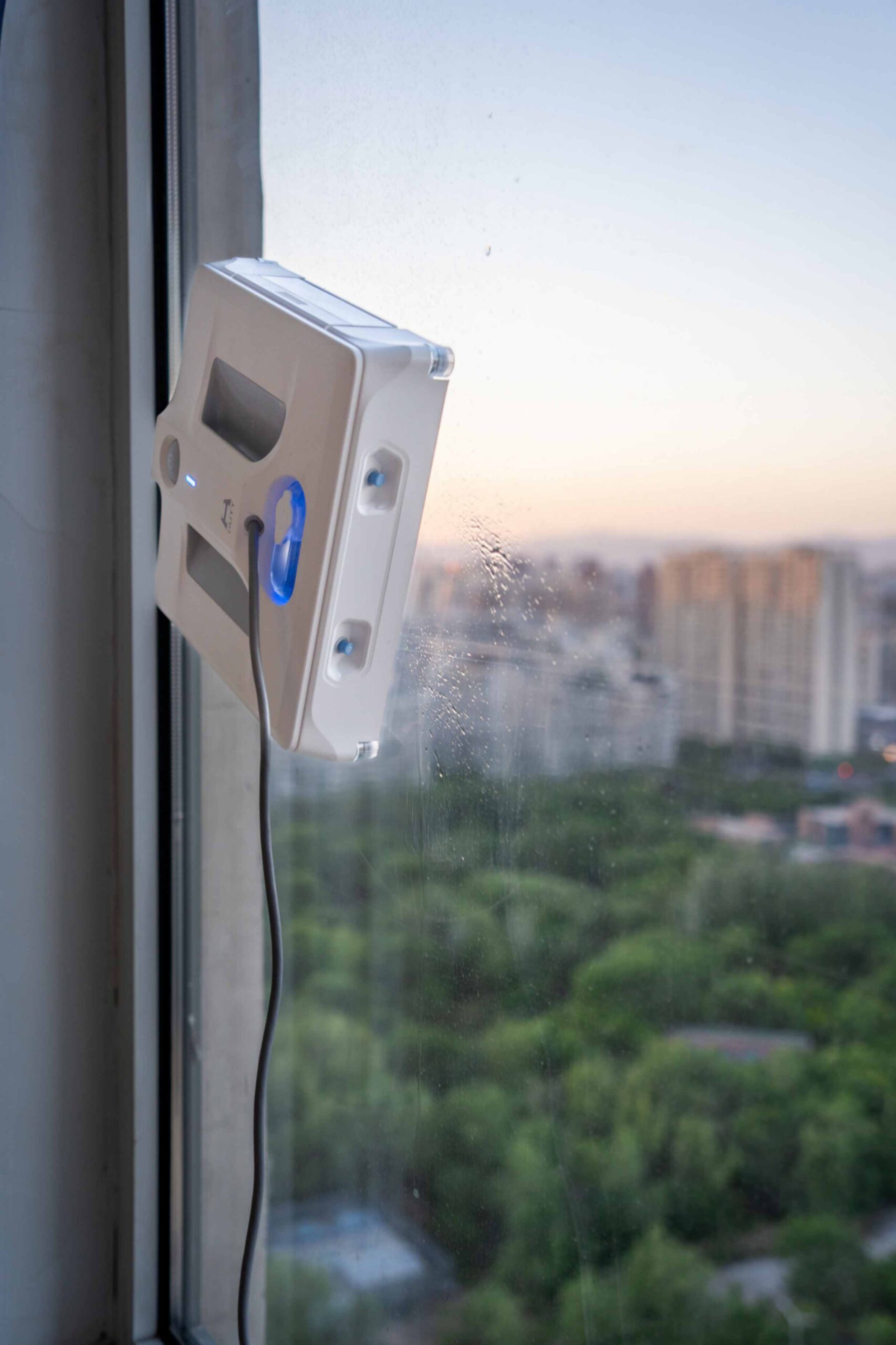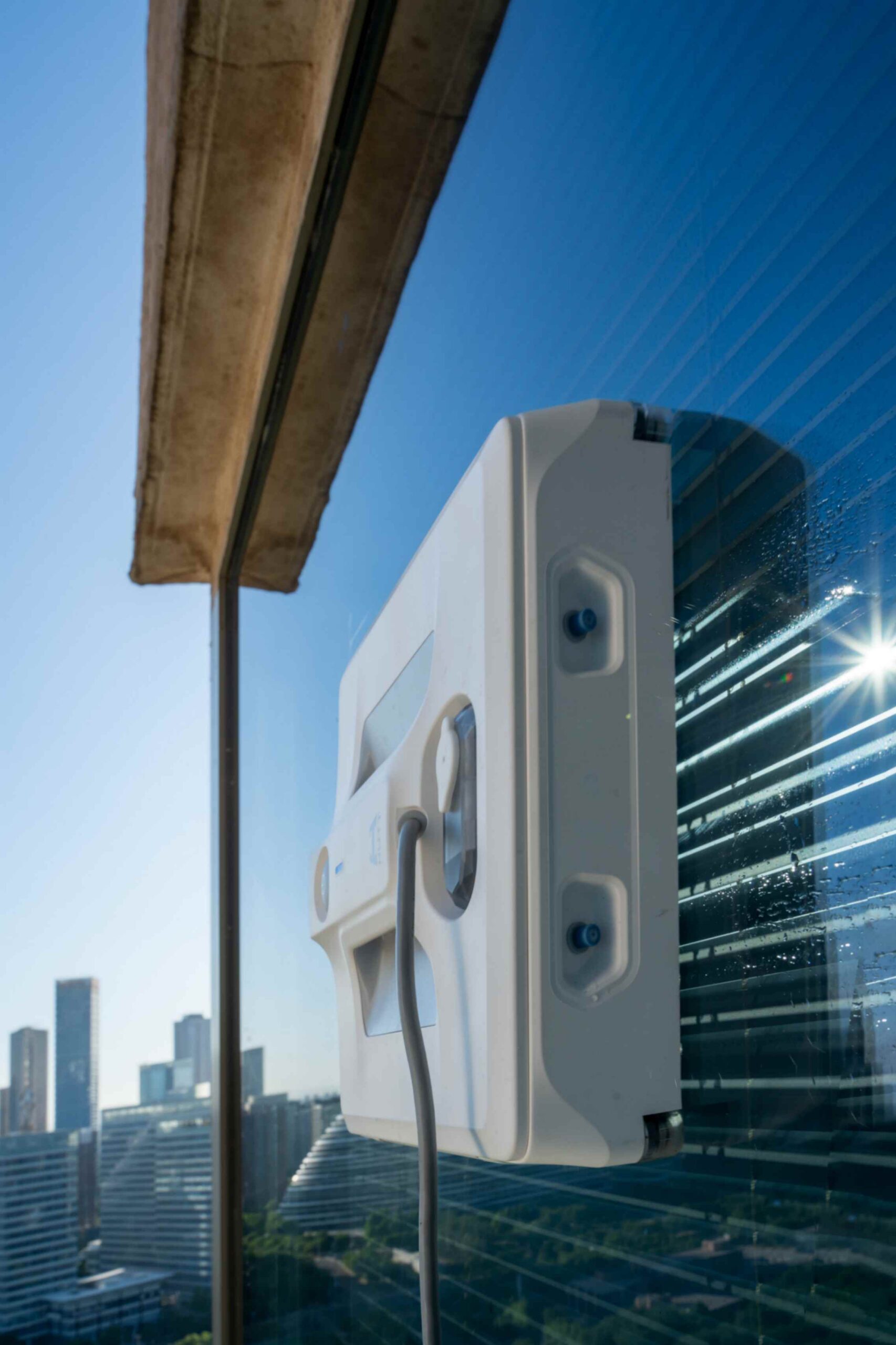 A beépített biztonsági kötél és az érzékelők garantálják, hogy a robotok biztonságosan működjenek még a legmagasabb ablakokon is.